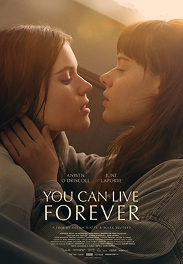 There is something hauntingly painful and pure about a person’s first true love the things that stand between us and our chosen love can devastate us like nothing else. The new movie You Can Live forever directed by Mark Slutsky and Sarah Watts evokes these feelings perfectly. The story follows Jaime who is sent to live with her aunt and uncle, a pair of devoted Jehovah’s witnesses, after the death of her father. While staying with them she meets Marike, a girl her age in the church. They become fast friends but there is an undercurrent that neither of them can deny that they want to be more then just friends, something impossible in the community they are residing in. The film takes its time exploring the slow bloom of their feelings and the viewer is almost as surprised as Jaime when Marike steals her first kiss.