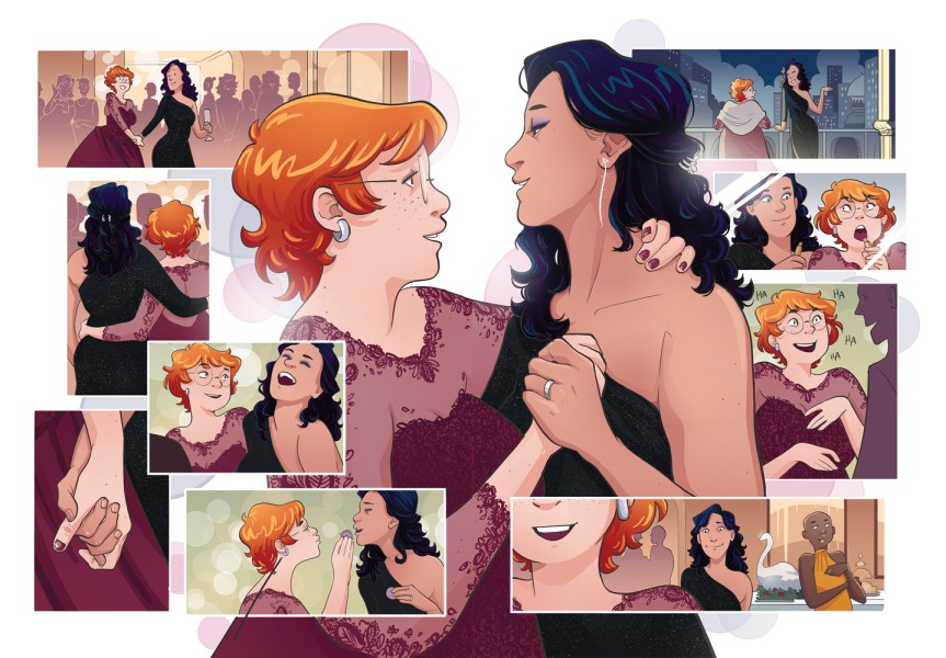 I see a lot of LGBTQ2+ stories that come across my desk, and a lot feature coming out stories or romances of people in their twenties, and it was very refreshing to see a comic about the will they/ won’t they courtship of a pair of older queers.